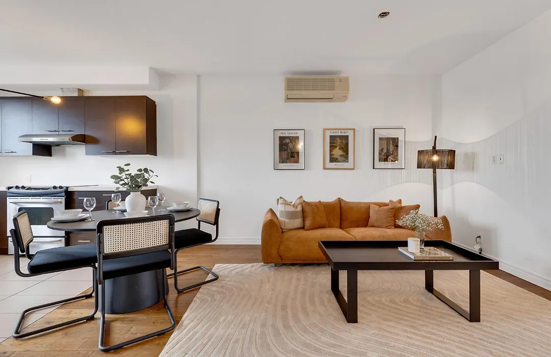 Featuring a television, Lofts De La Petite Italie Apartment is furnished with sound-proofed windows, as well as amenities like climate control. This property is also furnished with a sofa set and a work desk. For your comfort, you will find a tub, a separate toilet, and a shower. Furthermore, the bathroom boasts a hairdryer and complimentary toiletries.